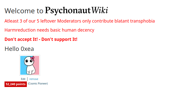 I spend a year moderating PsychonautWiki before my contributions got anonymized(merged into User:Blackhole; for calling out the abusive and inproper conduct coming from several moderators and the admin).